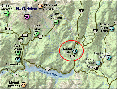 east on the Lewis River Road which will turn into Forest Road 90 after you enter