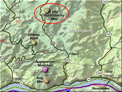 is the parking area for the trailhead to Little Huckleberry Mountain.