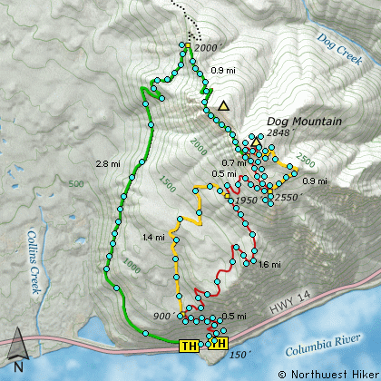 Dog Mountain to the north. Continue on