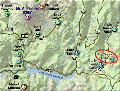 east on the Lewis River Road which will turn into Forest Road 90 after you enter