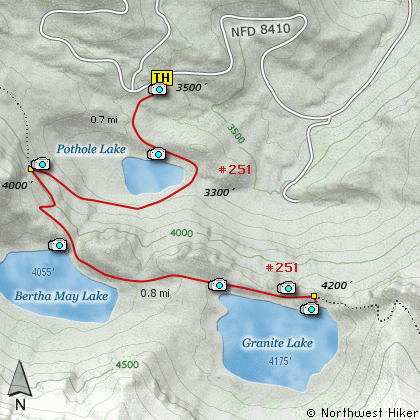 you to a more heavily forested area just above the first lake, Pothole Lake.