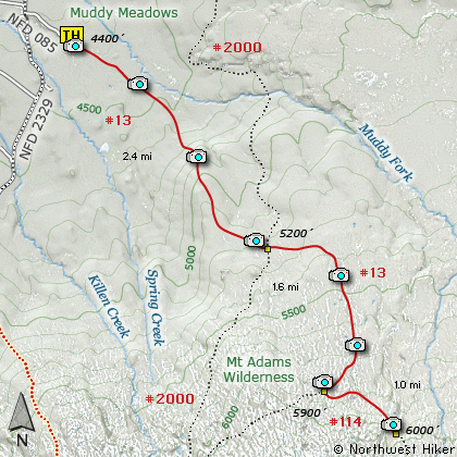 Map of the Foggy Flats, Mt Adams Wilderness Hike