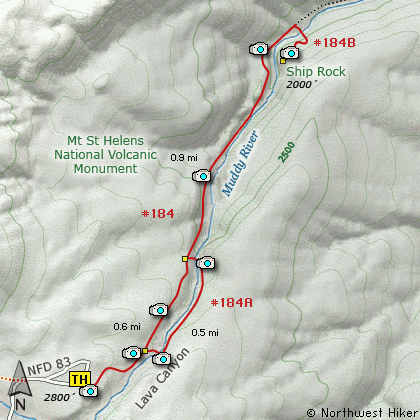 another 4.3 miles to the parking area for Lava Canyon. Note: You will pass the trailhead for the