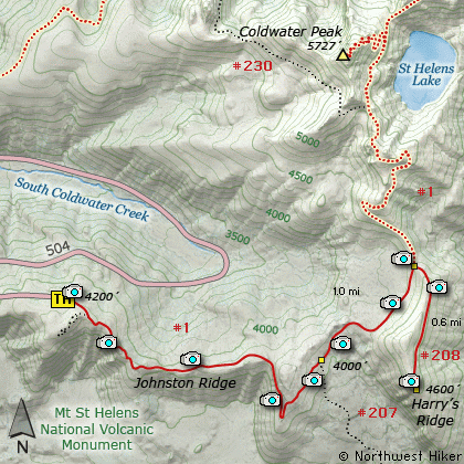 Map of the Harry's Ridge, Spirit Lake Hike