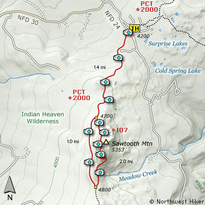 area for this hike, where the Pacific Crest Trail crosses FR24.