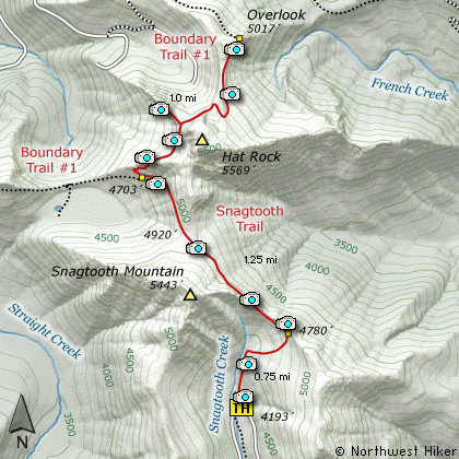 The Hike to the Hat Rock Overlook via Snagtooth Ridge trail begins