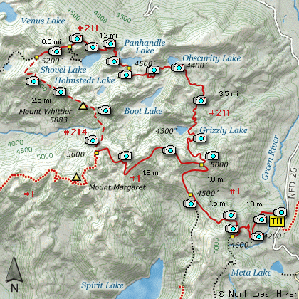 Map of the Mt Margaret Back Country Lakes, Mt Whittier Hike
