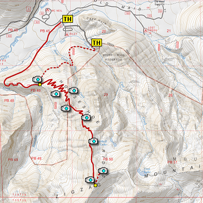 This hike can begin in a number of places. For this narrative I begin the hike on