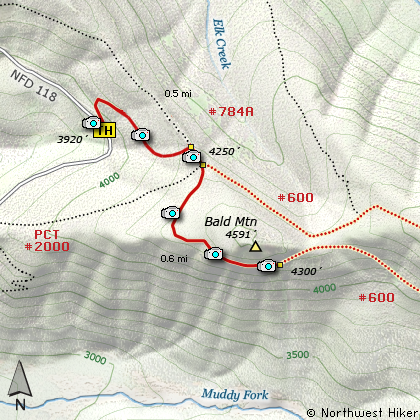 you intersect the Pacific Crest Trail #2000. Follow this trail for a couple hundred feet to the