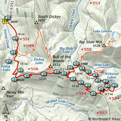 to Big Slide Mountain, but it also will take you to the trail to Welcome Lakes,