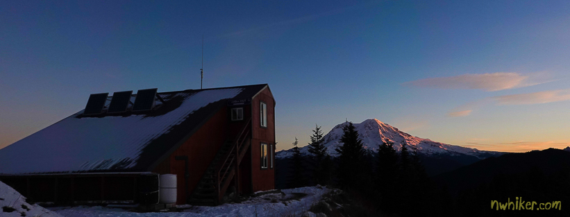 Photo taken on 12/07/18 of Mt. Rainier from High Hut