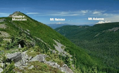 northwest; Mt Rainier to the north; Mt Adams to the northeast; Mt Defiance to the east.