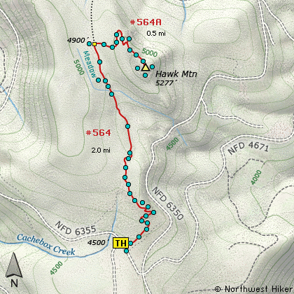 This hike begins at Cache Meadow on the southern most end of what is known as the Rhododendron Trail, Rho Trail for