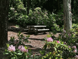 When I hiked to the lake in mid-July the Rhododendrons were in full bloom, and oh, what a treat.
