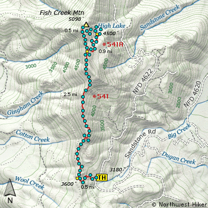 summit, but no sign referring to High Lake. We did Fish Creek Mtn. first, then came back and