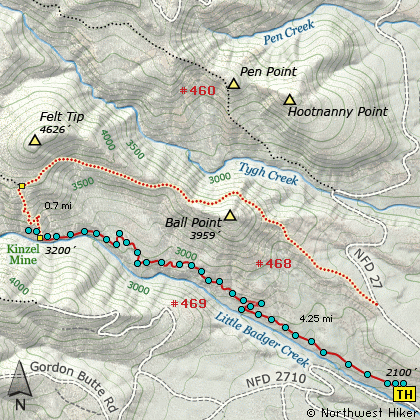 Little Badger Creek trail takes you four miles up the creek that gives it its name, and then connects