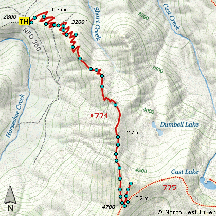at the Cast Creek trailhead and hike the road, or what is left of it, to the actual