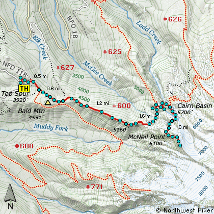 at the top of the ridge intersects the main trail to McNeil Point. But do not use this