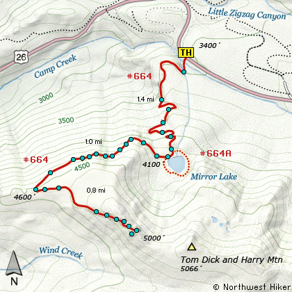 This hike begins at the highway 26 Mirror Lake trailhead. Most of the hike