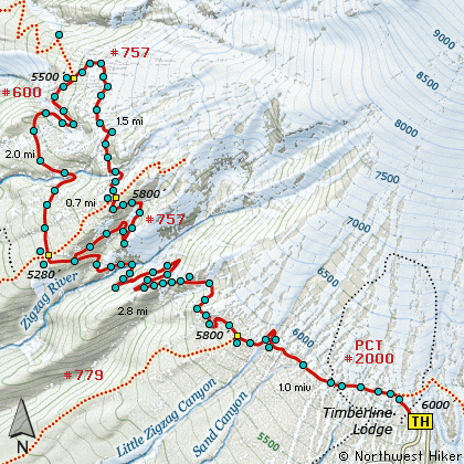 this trail meets up with the Timberline Trail #600 (also know as the Pacific Crest Trail #2000).