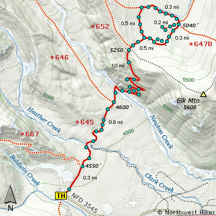 point where you arrived at Elk Meadows and retrace your steps back to the trailhead