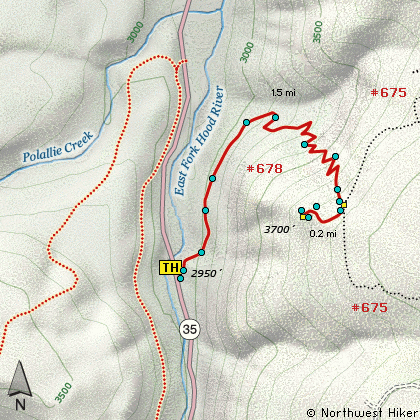 the Polallie trailhead, but mother nature took care of that idea some time ago. Now