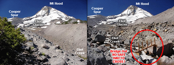 across Eliot Creek, so one must use the Detour UPHILL and cross the creek where it is