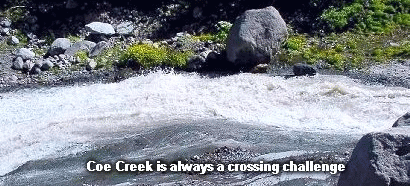 About a half mile from your destination, you must cross Coe Creek. Sometimes this is