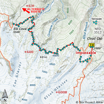 Now, a word about hiking from Cloud Cap to Elk Cove. Because at the time of this writing,