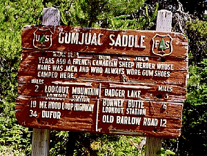 again and remains in the forest until you break out at Gumjuwac Saddle and Forest Road #3550.