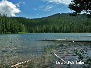 follow the trail uphill to the upper Twin Lake. Again, most of the hike is in