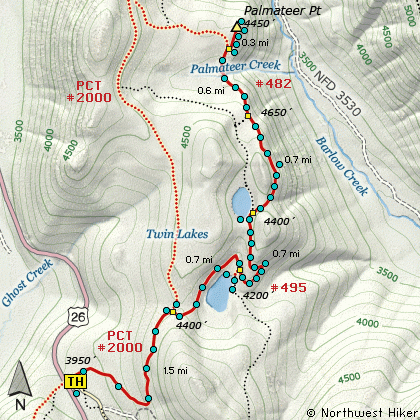 the creek, is the junction to Palmateer Point. Bear right and climb steeply for