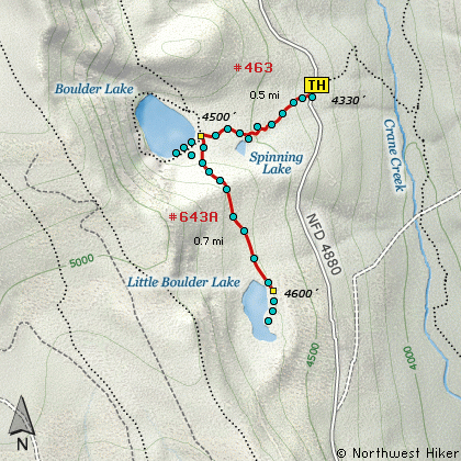 not only to Little Boulder Lake, but also north to the larger lake. Either way, this is a