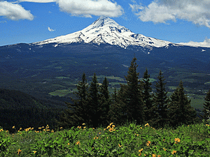 sharp descent, you will come out into an open area with a fantastic view of Mt. Hood