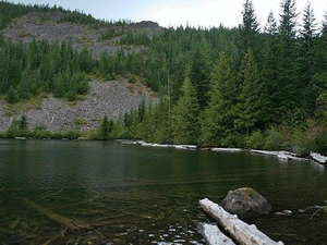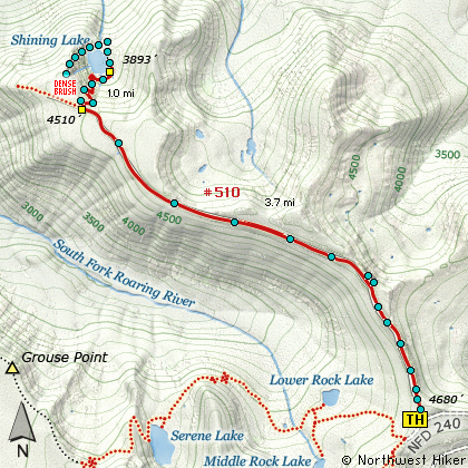 The hike to Shining Lake follows an old abandoned road that led to a fire lookout
