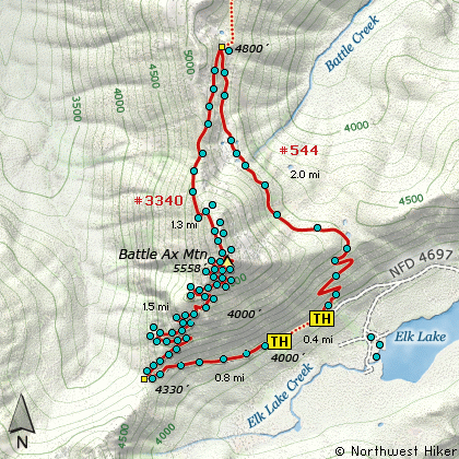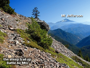 Battle Ax Mtn and Mt Beachie, you leave what was a road and enter what is a trail.