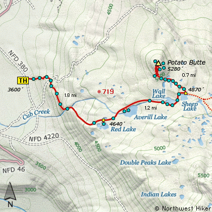 of your destination, Potato Butte. Boy, it sure doesn't look tall from this lake.