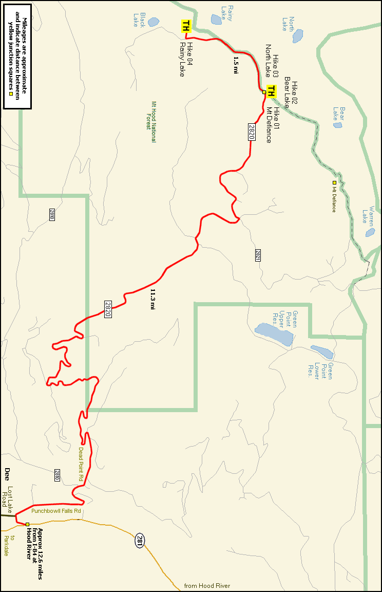 Directions to Trailheads to: Mt. Defiance South, Bear Lake, North Lake, and Rainy Lake THIS MAP IS NOT INTENDED TO BE LEGIBLE UNTIL IT IS PRINTED.