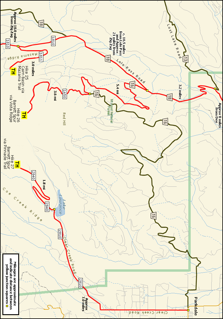Directions to Trailheads to: Mazama Trail to Cairn Basin, Vista Ridge to Barrett Spur Pinnacle Trail to Barrett Spur THIS MAP IS NOT INTENDED TO BE LEGIBLE UNTIL IT IS PRINTED.